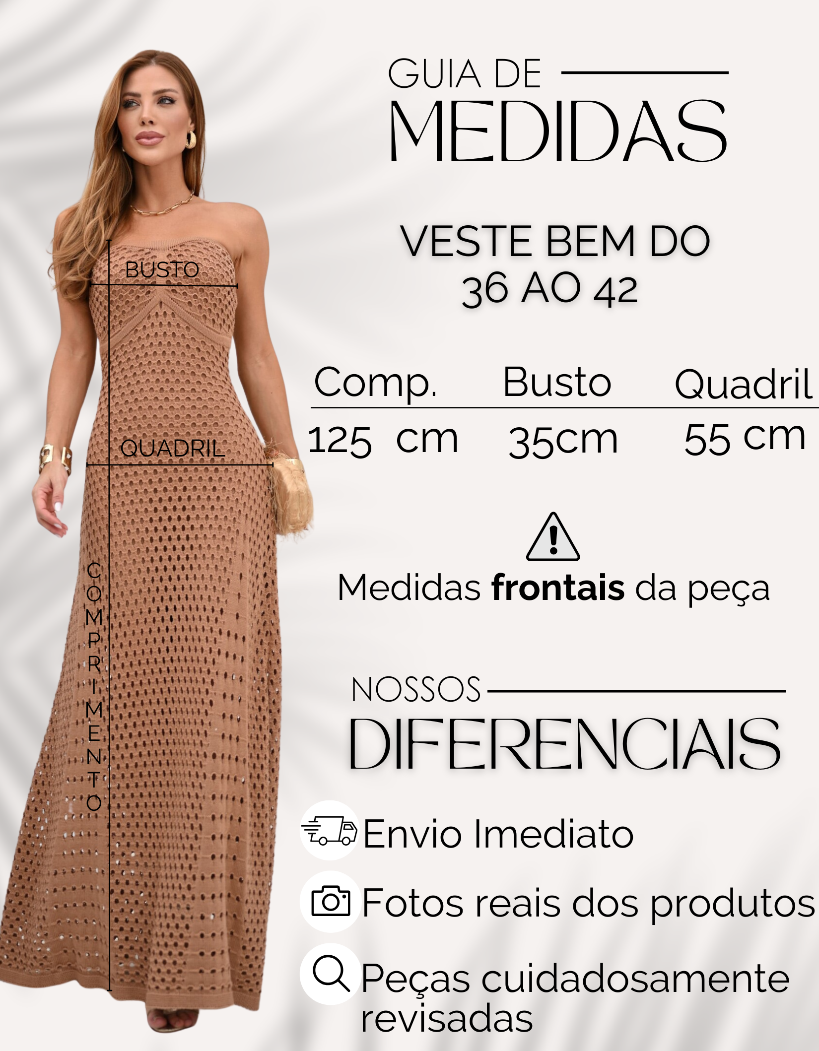 • Não possui bojo. Possui elástico no busto.